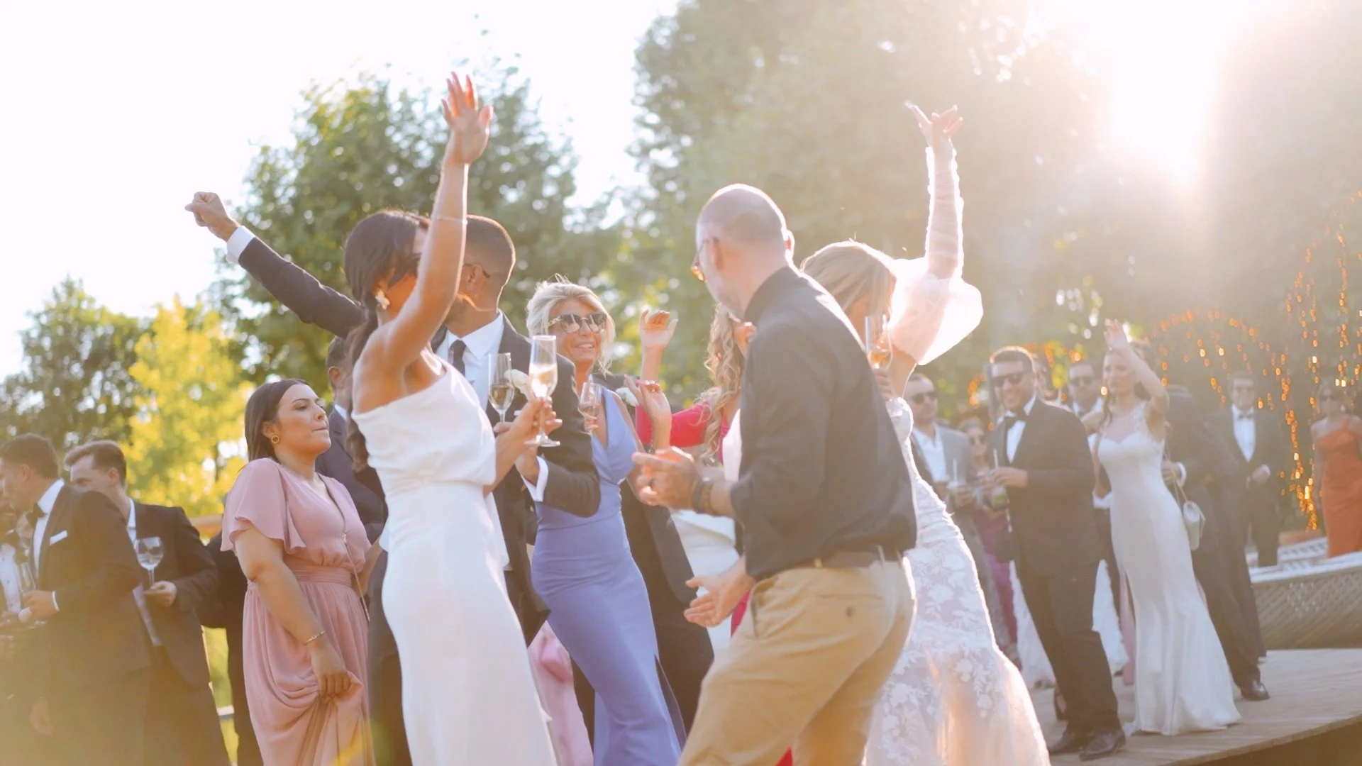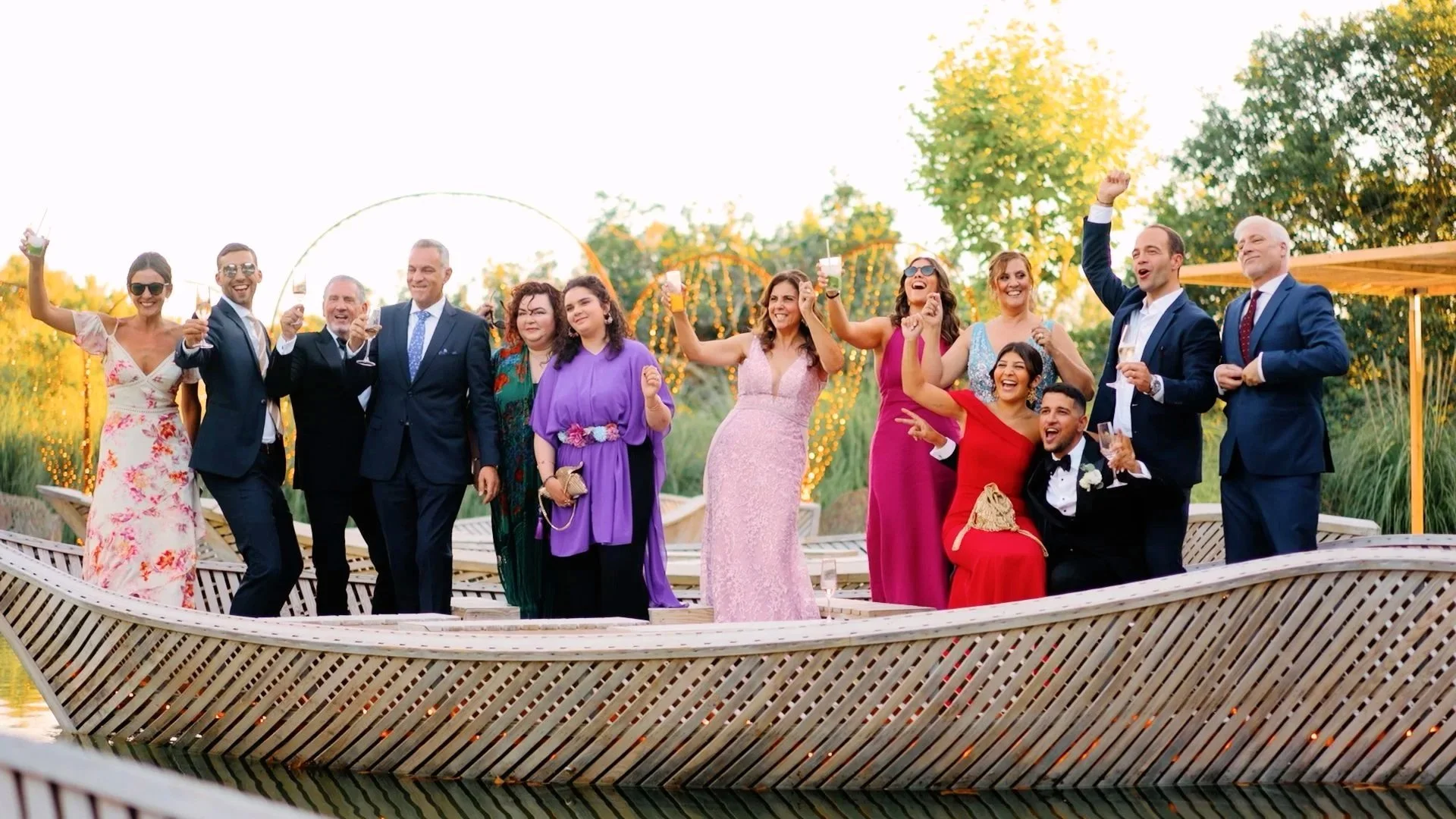 Fomos recebidos pela voz inconfundível de Tiago Barbosa, criando imediatamente um ambiente elegante e envolvente. O sunset wedding na Quinta do Solar da Levada foi conduzido pela equipa da Groovy Events, que sabe como poucos transformar um final de tarde numa festa memorável. Saltos, brindes, abraços e muitos sorrisos marcaram este momento.