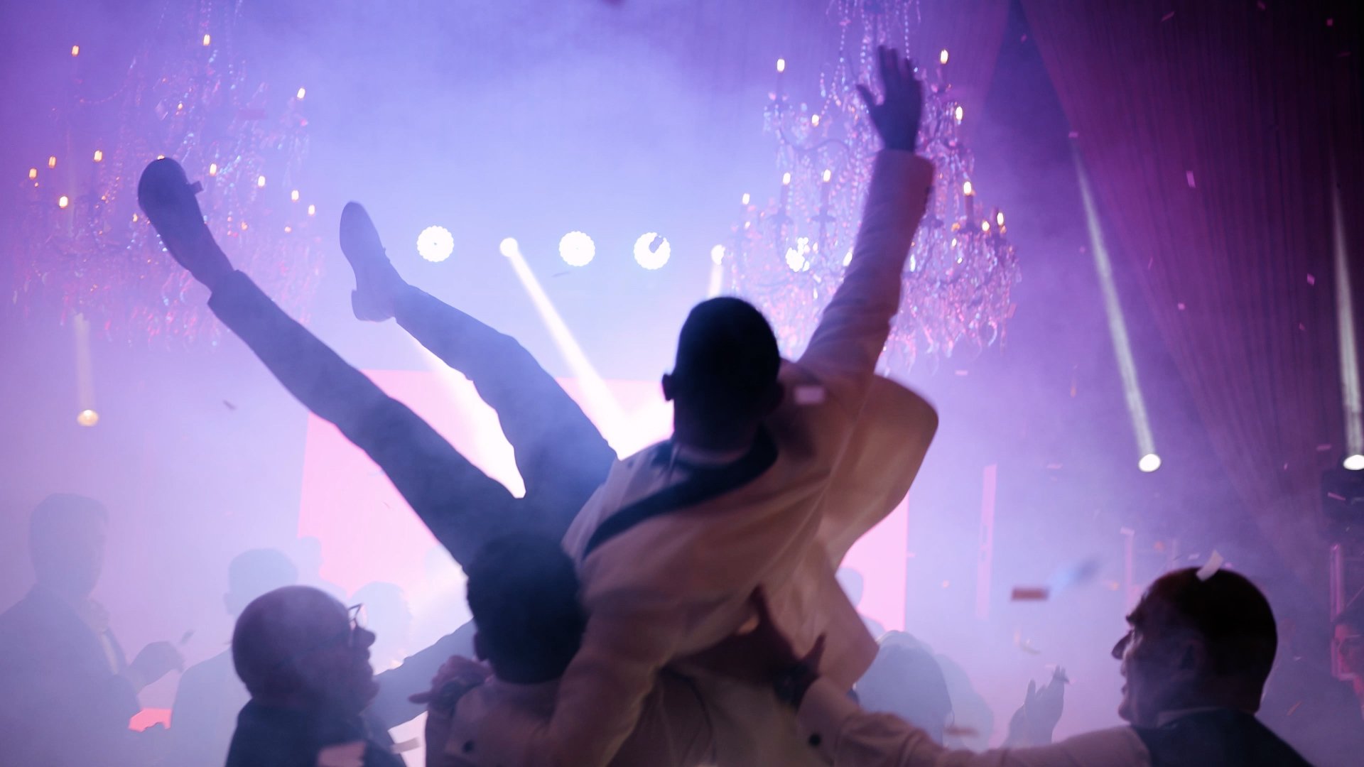 Depois da primeira dança dos noivos, a Groovy Events fechou a noite com uma festa intensa, cheia de luz, confetes, energia e uma pista completamente rendida.