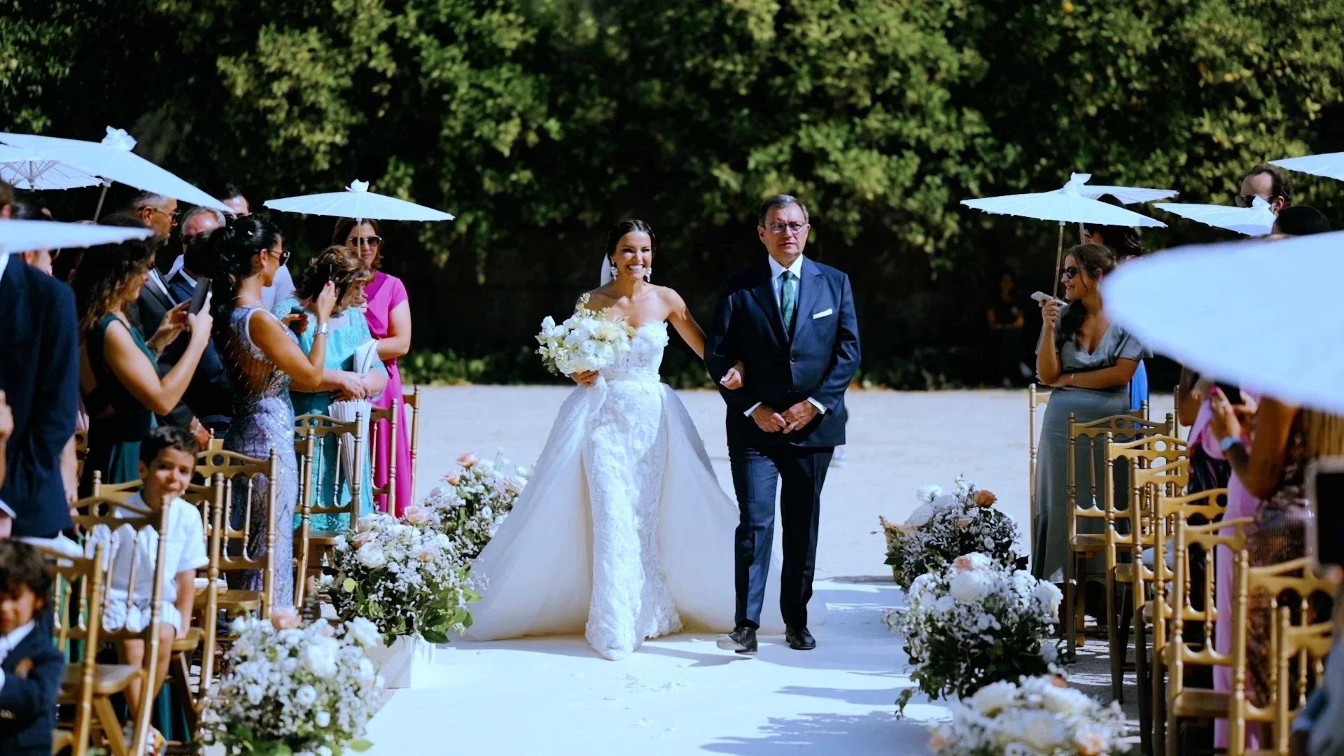A reação da Rosana ao entrar, a emoção visível, o silêncio atento de todos os convidados — foi absolutamente épico. Como videógrafo de casamento, são estes segundos que justificam tudo: o arrepio, o nó na garganta, o impacto visual e emocional. É aqui que um filme de casamento deixa de ser apenas um registo e passa a ser uma experiência.