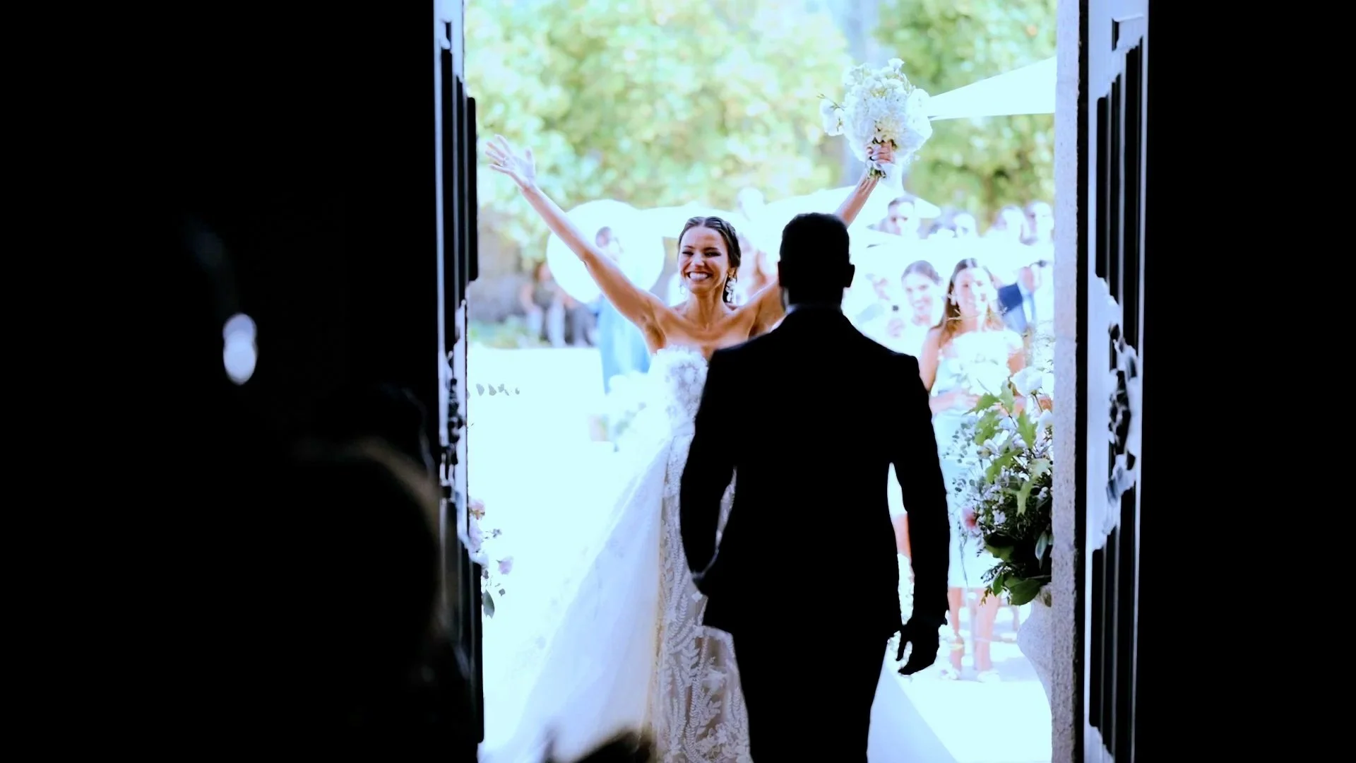 A manhã começou com os preparativos dos noivos, rodeados de família e amigos, num ambiente calmo mas cheio de expectativa. A Casa de Quintar oferece essa combinação rara: elegância, luz natural incrível e uma envolvência verde perfeita para captar imagens autênticas e emocionais. A cerimónia religiosa aconteceu na própria capela da quinta — um detalhe que faz toda a diferença para quem procura um espaço completo, sem deslocações. Mas o verdadeiro ponto alto deste casamento… foi sem dúvida a entrada da noiva.
